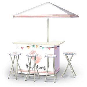| Fabric Wrap(s) Included | One digitally printed fabric design that “wraps” around the bar and adheres with Velcro that is already attached. | One digitally printed fabric cover that is centered over the frame and then each of the four arms extend out to their corner pocket for a tight fit. | Four digitally printed fabric seat covers that simply slip over the tan padded seat of each stool for a snug fit. | – | – | – |